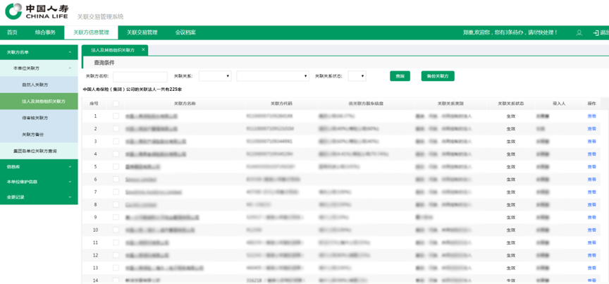 ¹ØÁªÂòÂôϵͳÓû§Ô̺¬¼¯ÍŹ«Ë¾¼°ÏÂÊô×Ó¹«Ë¾£¬Ö°Äܺ¸ÇÁ˹ØÁª·½ÖÎÀí¼°¹ØÁªÂòÂôÖÎÀí£»Í¨¹ý¶Ô¸÷¸ö¼à¹Ü»ú¹¹Ë¾·¨ÂɹæÍ³Ò»Õû¶Ù£¬Ã÷È·¹ØÁª·½¼°¹ØÁªÂòÂôÈ϶¨¹æ¶¨£¬ÊµÏÖ¶Ô¼¯Íż°ÏÂÊô×Ó¹«Ë¾µÄ¹ØÁª·½½øÐÐ×Ô¶¯¼ø±ðץȡ²¢·ÖÀàչʾ£¬¿Éͨ¹ý·ÅÉäͼ·½Ê½Õ¹Ê¾¸÷·½Ö®¼ä¹ØÁª¹ØÏµ£»ÒÀÕÕÊÂǰ¡¢ÊÂÖÓ×¢¹ýºóÈý¸ö½×¶Î¶Ô¹ØÁªÂòÂô½øÐÐÈ«ÐÔÃüÖÜÆÚÖÎÀí£¬ÊÂǰ×Ô¶¯¼ø±ðÂòÂô²¢½øÐÐÄÚ²¿ÉóºËÁ÷³Ì£¬ÊÂÖжÔÂòÂô½øÐÐ¼à¿ØÔ¤¾¯²¢ÊµÊ±¶Ô±íÅû¶£¬¹ýºóÂòÂô·Ö½×¶ÎÖ´Ðв¢·ÖÎöͳ¼Æ¡£Í¨¹ý¹¹½¨È«¼¯ÍÅͳһµÄ¹ØÁªÂòÂôÖÎÀíϵͳ£¬ÓÐЧÏ÷¼õÁ˹«Ë¾¹ØÁªÂòÂôÖÎÀí¹¤×÷ÖдæÔÚµÄÐÅÏ¢¸üв»ÊµÊ±¡¢Îĵµ·ÖÉ¢¡¢¹¤×÷Á¿´ó¡¢Ð§ÄܵÍÁӵȶàÖÖÎÊÌ⣬ÏÔÖøÌá¸ßÁ˼¯ÍŹ«Ë¾µÄ¹ØÁªÂòÂôÖÎÀíˮƽ£¬²¢Îª¹«Ë¾¸÷¼¶ÖÎÀíÕßÌṩ¾ö²ßÊý¾ÝÖ§³Ö¡£
