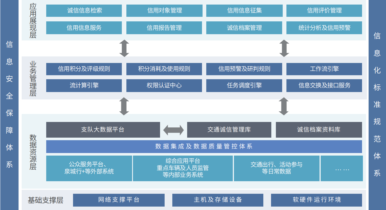 ½»Í¨ÖÎÀí³ÏÐÅÆ½Ì¨ÒÔÌìÈ»ÈË¡¢³µÁ¾¡¢·¨È˵ÈÕ÷Пù»ù¶ÔÏóΪÖ÷Ì⣬ ¹¹½¨360¶È³ÏÐŶÔÏóÄ£ÐÍ¡£³éÈ¡¸÷ÀàÓйØÐÅÓþÐÅÏ¢µ½ÏàÓ¦¶ÔÏóÄ£ÐÍ£¬½«½»Í¨Î¥·¨ÐÅÏ¢¼°²»ÎÄ»¯½»Í¨³©ÎªµÈÄÉÈ뽻ͨ³ÏÐŵµ°¸£¬ÐγÉÒ»ÖÖ“³ÏÐÅÊÜÒæ¡¢Ê§ÐÅÊܽ䔵Ľ»Í¨°²È«ÖÎÀí»úÔì¡£¿ÉΪ±í²¿ÐÅÓþ¼à¹ÜÓйز¿ÃÅÌṩ»ù´¡Êý¾ÝÖ§³Ö£¬ÎªÏìӦȫ¹úÉç»áÐÅÓþϵͳ½¨ÉèÌṩ±£ÏÕ¡£Æ½Ì¨ÖØÒªÔ̺¬½»Í¨³ÏÐÅ»Ïñ£¨³ÏÐÅÐÅÏ¢¼ìË÷ÒýÇæ£©¡¢ÐÅÓþ¶ÔÏóÖÎÀí¡¢ÐÅÓþÐÅÏ¢Õ÷¼¯¡¢ÐÅÓþÆÀ¼ÛÖÎÀí¡¢ÐÅÓþÐÅÏ¢·þÎñ¡¢ÐÅÓþ»ã±¨ÖÎÀí¡¢³ÏÐŵµ°¸ÖÎÀí¡¢Í³¼Æ·ÖÎö¼°½»Í¨³ÏÐÅÔ¤¾¯¡¢×éÖ¯¼°Óû§ÖÎÀíµÈ¡£