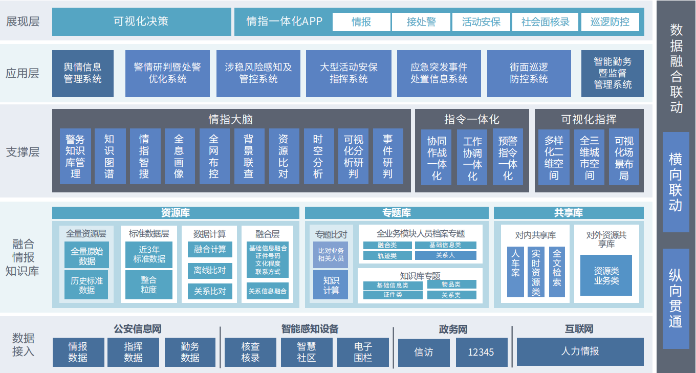 ÇéÖ¸Ò»Ì廯×ÛºÏʵսƽ̨ÒÀÕÕ“ÇéÖ¸Ò» Ì廯1+1>2”µÄ×ÜÌå˼·£¬ÒÀ¸½¾¯ÎñÔÆµÄ¸÷ÀàÊý¾Ý×ÊÔ´£¬½«µý±¨¡¢Ö¸»Ó¡¢ÇÚÎñ¡¢Ðж¯ µÈÒµÎñÀûÓýøÐи߶ÈÈںϣ¬ÒÔ“ Çé Ö¸ ´ó ÄÔ”¡¢“Ö¸ÁîÒ»Ì廯”¡¢“¾¯ÎñÉí·Ö¿ÉÊÓ»¯”ΪÖ÷Ì⣬֧³Ö´¦¾¯ÓÅ»¯ ¡¢Éç»áάÎÈ ¡¢Ñ²Âß·À¿Ø¡¢»î¶¯°²±£¡¢Ó¦¼±´ëÖõÈÒµÎñÀûÓó¡¾°¡£ ×îÖÕʵÏÖ¹«°² “¿´µÃ¼û¡¢ºôµÃͨ¡¢µ÷µÃ¶¯¡¢ ÄÜÑÐÅÓ×¢·ÀµÃס”µÄ¾¯ÇóʵսÐÂÐèÒª¡£