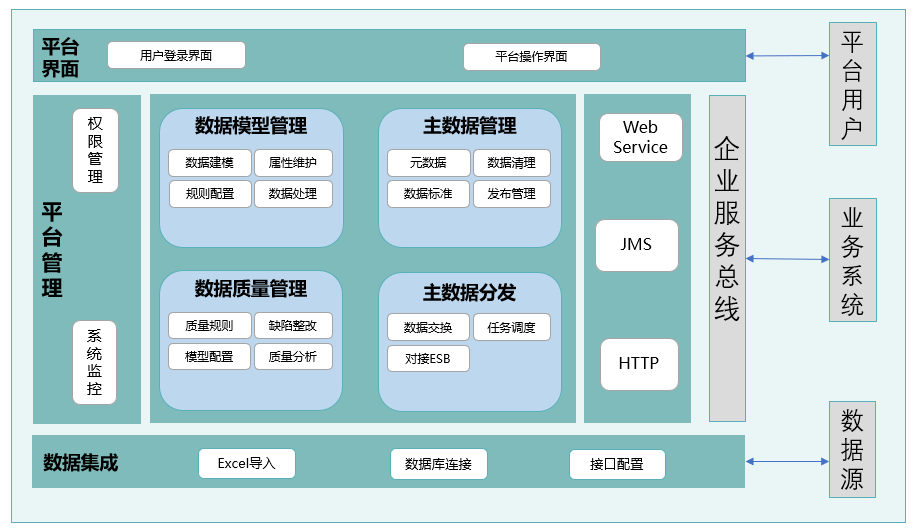 2¡¢ÊµÏÖÖ÷Êý¾ÝÈ«ÐÔÃüÖÜÆÚ¹Ü¿Ø£¬Í¨¹ýÕûºÏ¸÷ÒµÎñϵͳ³ÁÒªÊý¾Ý,ÔÚÖ÷Êý¾ÝÉóºËºó½øÐзַ¢£¬Îª¸÷¼¶µ¥ÔªÌṩ¼¯³É¡¢È«Ãæ¡¢ÕýÈ·¡¢ÊµÊ±µÄÖ÷Êý¾Ý·þÎñºÍÐÅÏ¢»¯»ù´¡¹¤×÷Ö§³Ö¡£