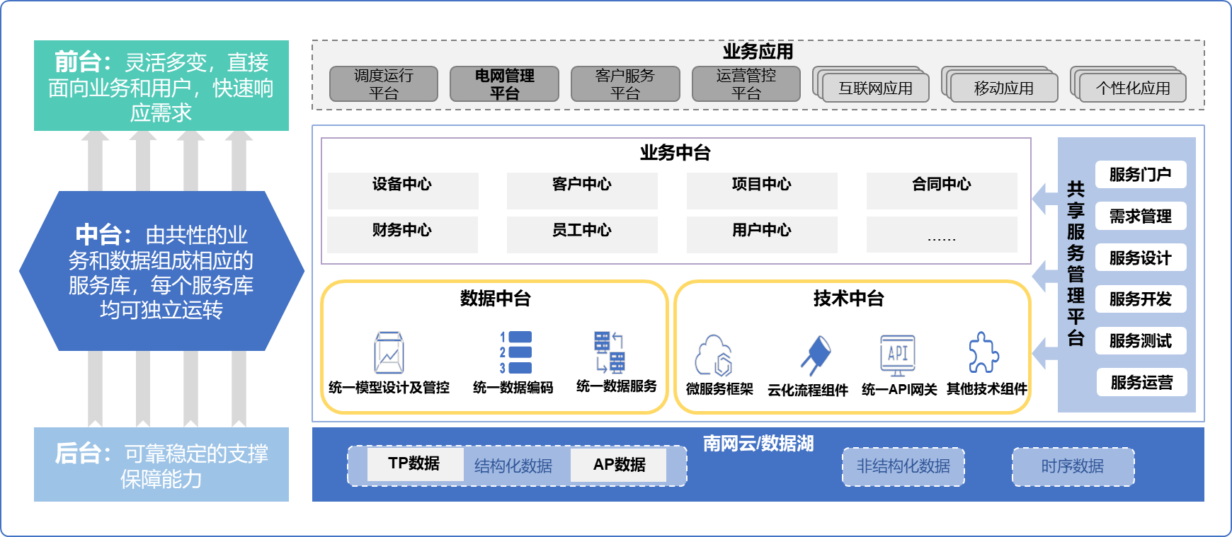 “ͨ¹ý½«¶à±äµÄǰ̨Óë¹²ÐÔµÄÖÐ̨¡¢ÎÈÖØµÄºó¶Ü½øÐнâñ´òÔì³ÖÐøÑݽøµÄÆóÒµ¼¶ÒµÎñÄÜÁ¦¡¢Êý¾Ý¹²Ïí·þÎñÄÜÁ¦¡¢Í¨Óü¼ÊõÄÜÁ¦Æ½Ì¨£¬È·±£¸÷ÒµÎñǰ̨ÀûÓü±¾ç¹¹½¨ºÍµü´ú¡£